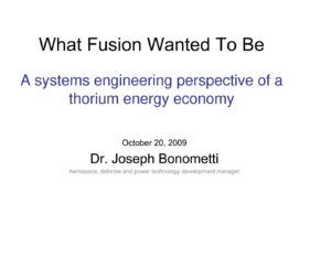 Thorium Energy Alliance conference talk – Part 2 of Joe Bonometti’s discussion about the real engineering and planning behind creating a new molten salt reactor system. Joe brings years of experience as a program manager and thermal systems engineer to bear on the real world planning needed to produce a new generation of power generators.