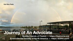 Karl Pauls of Seattle Friends of Fission & Ecomodernist Society of North America describes his journey into pro-nuclear activism. At TEAC11, Thorium Energy Alliance Conference #11, 2022-10-13. Seattle Friends of Fission: https://fissionnw.org/